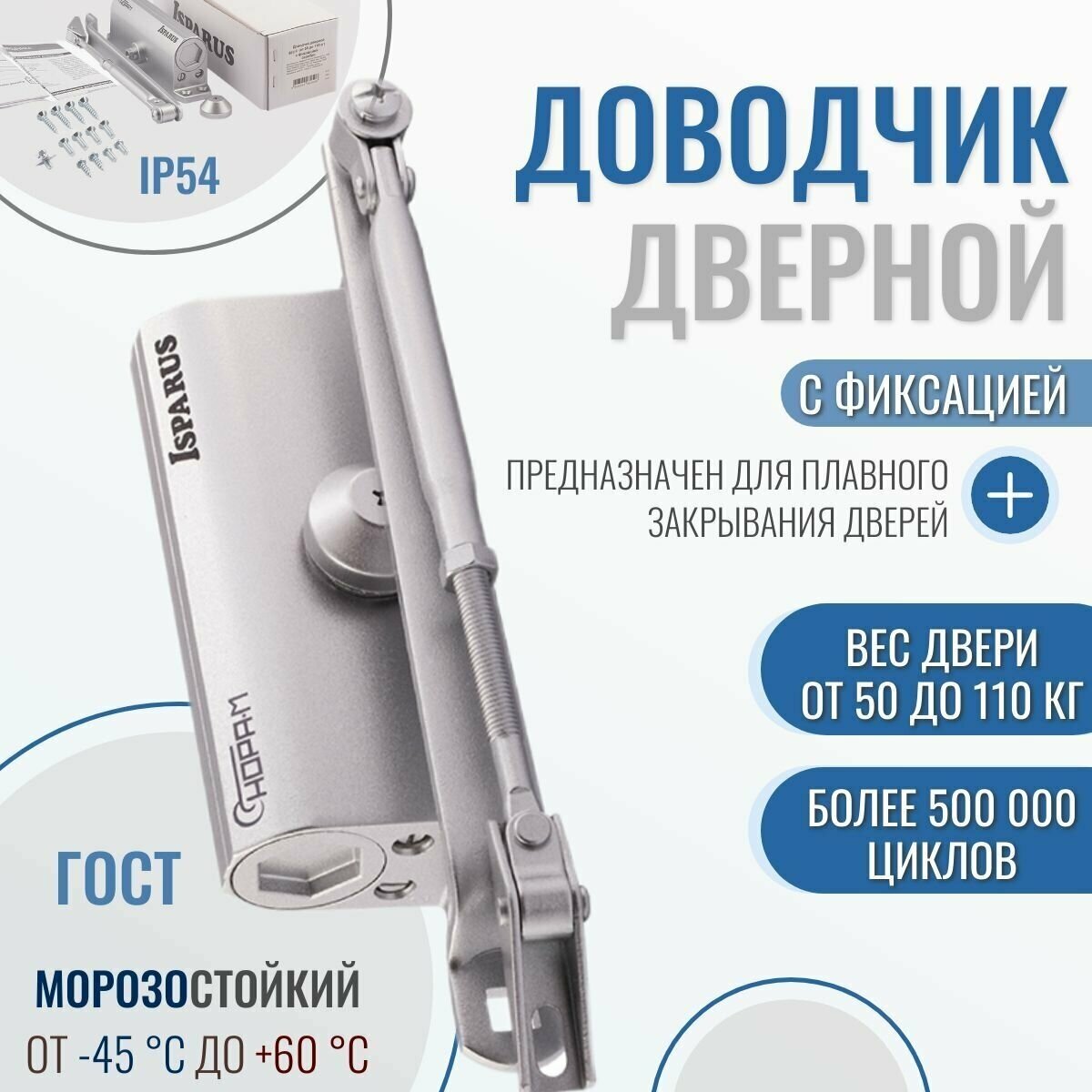 Доводчик дверной Нора-М Isparus 430F (морозостойкий с фиксацией для дверей 50-110кг) - Серебро