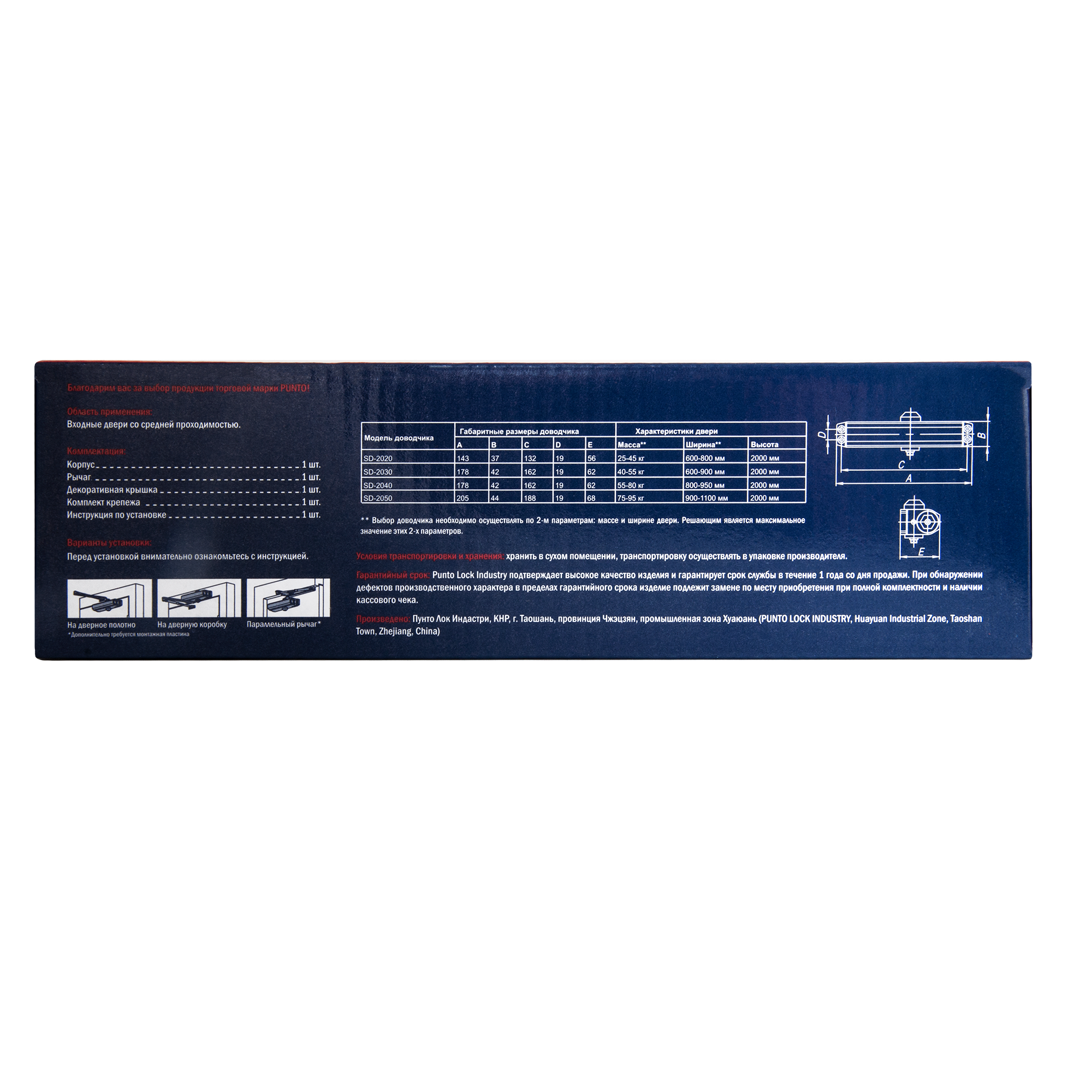 | Дополнительная информация | Доводчик дверной Punto SD-2020 WH 25-45 кг цвет белый |