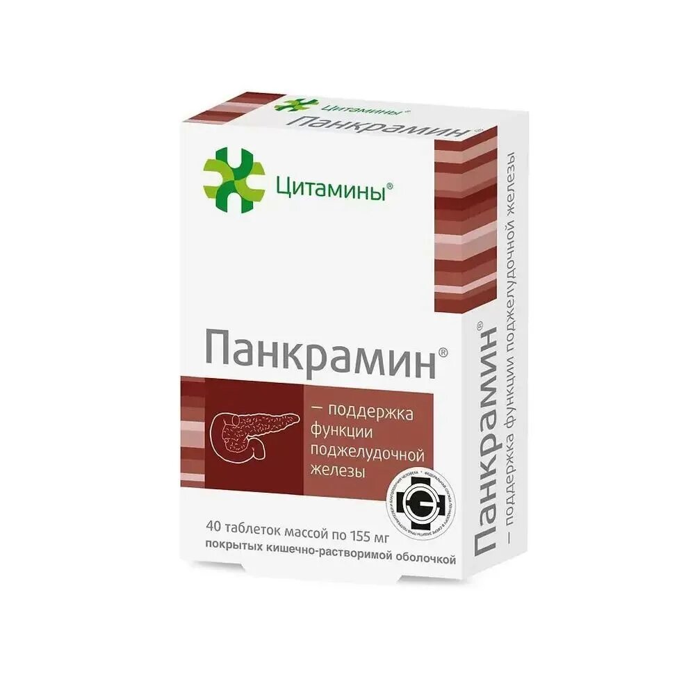 Панкрамин Цитамины таблетки п/о кишечнораств. 155мг 40шт
