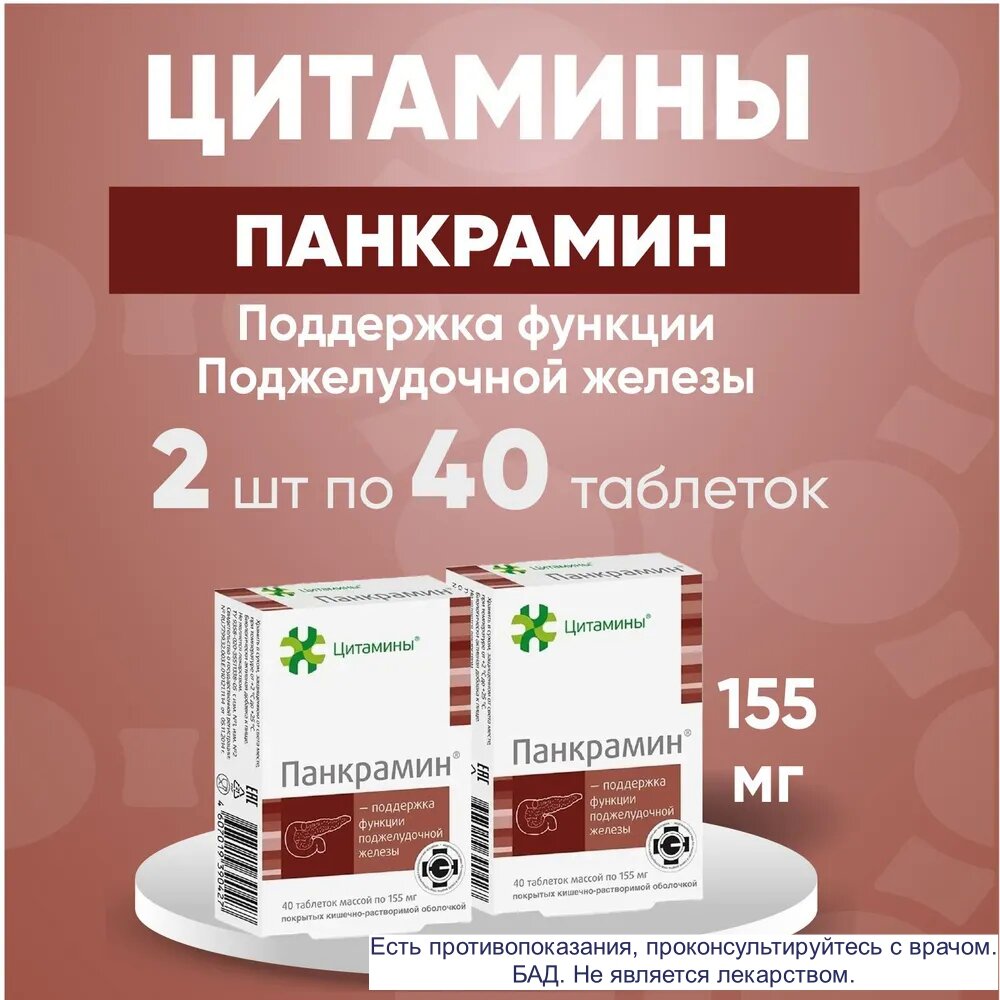 Панкрамин Цитамины таблетки кишечнорастворимые п/о 155мг 40шт