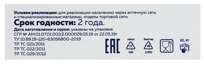 | Условия хранения | В сухом, защищенном от попадания прямых солнечных лучей и недоступном для детей месте, при температуре от +5°С до +25°С. |