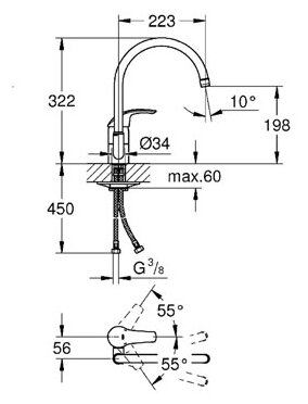 | Длина излива | 223 мм |