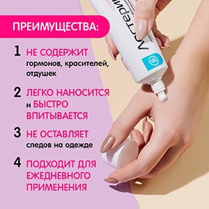 | Способ применения и дозы | Крем наносят на пораженные участки кожи тонким слоем 2–3 раза в сутки. Крем хорошо совместим с кожей, быстро впитывается, не оставляя следов на коже и одежде. В зависимости от тяжести и длительности течения патологического процесса, частоты обострений и их выраженности, а также индивидуальных особенностей рекомендовано использовать крем от 15 до 30 дней. Перерыв между курсами зависит от степени нормализации состояния кожи и склонности к рецидивам заболевания. Несмотря на быстрый эффект (уменьшение зуда и снятие воспаления), основное восстановительное действие проявляется не ранее чем через 7–10 дней использования и закрепляется только при курсовом применении. Только для наружного применения! |