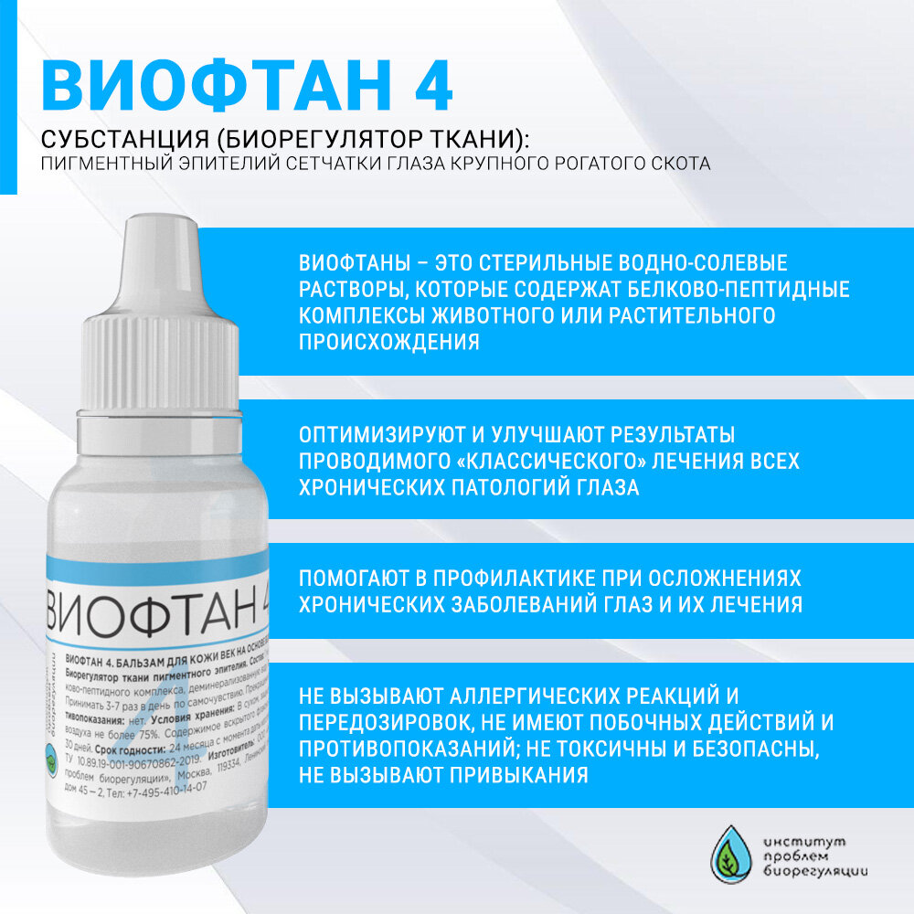| Способ применения и дозы | Виофтаны закапывают в глаза по 1-2 капле, 2-4-6 раз в зависимости от состояния. Разные Виофтаны закапывают с промежутком не менее чем через 10 минут. |