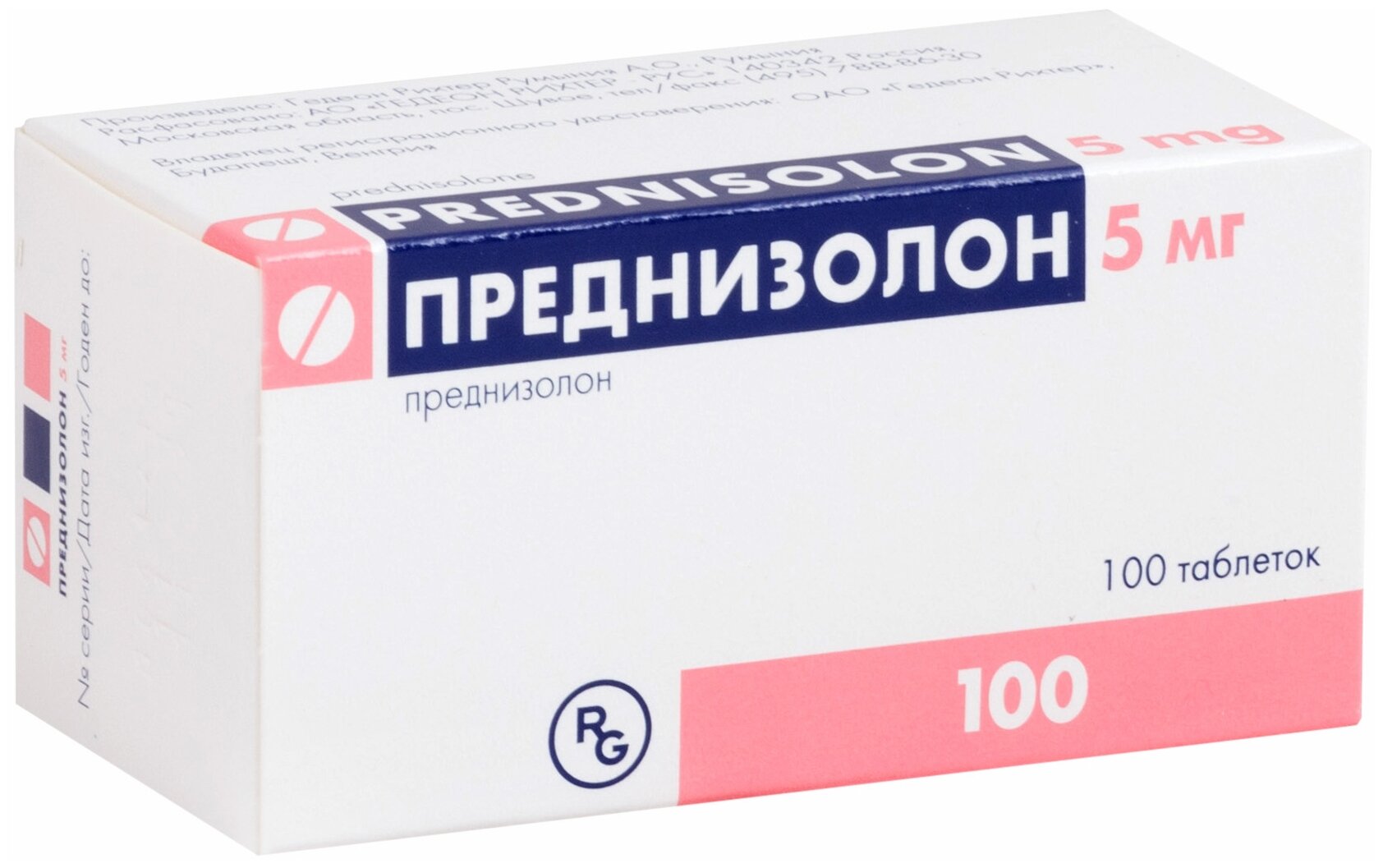 | Состав | 1 таблетка содержит:действующее вещество: преднизолон 5 мг;вспомогательные вещества: кремния диоксид коллоидный, крахмал картофельный, стеариновая кислота, магния стеарат, тальк, повидон, крахмал кукурузный, лактозы моногидрат. |