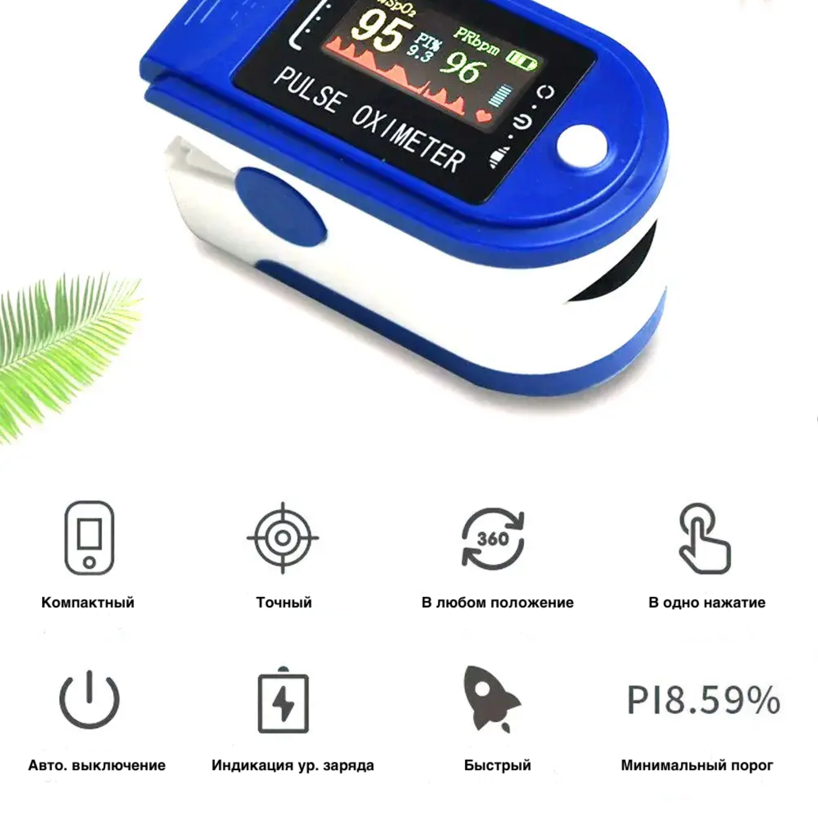 Пульсоксиметр на палец LK88, для измерения кислорода в крови и пульса, синий интересное: