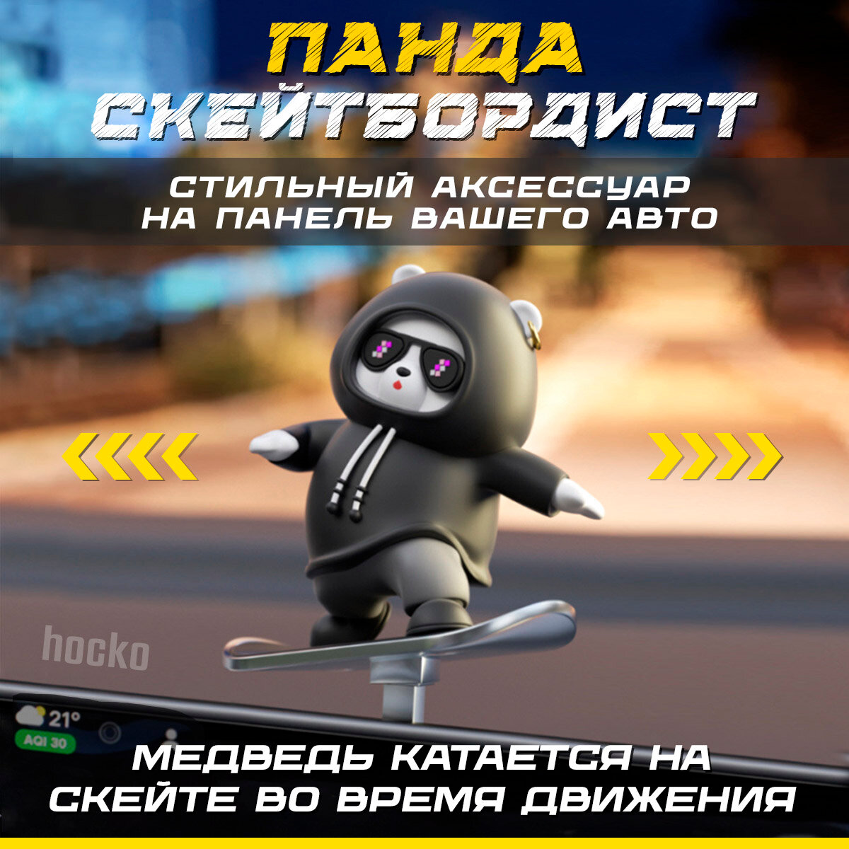 Игрушка в машину на панель авто фигурка Панда скейтбордист