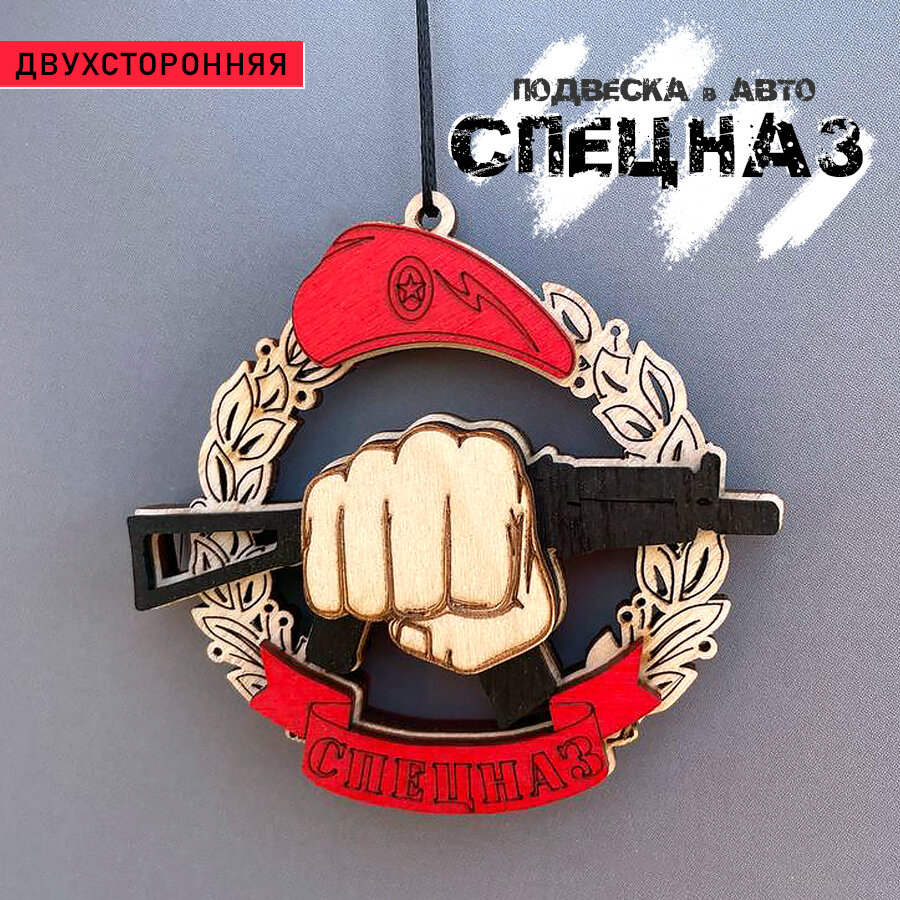 Подвеска в авто Военная разведка, спецназ ГРУ. Двухсторонняя, из дерева, ручная работа
