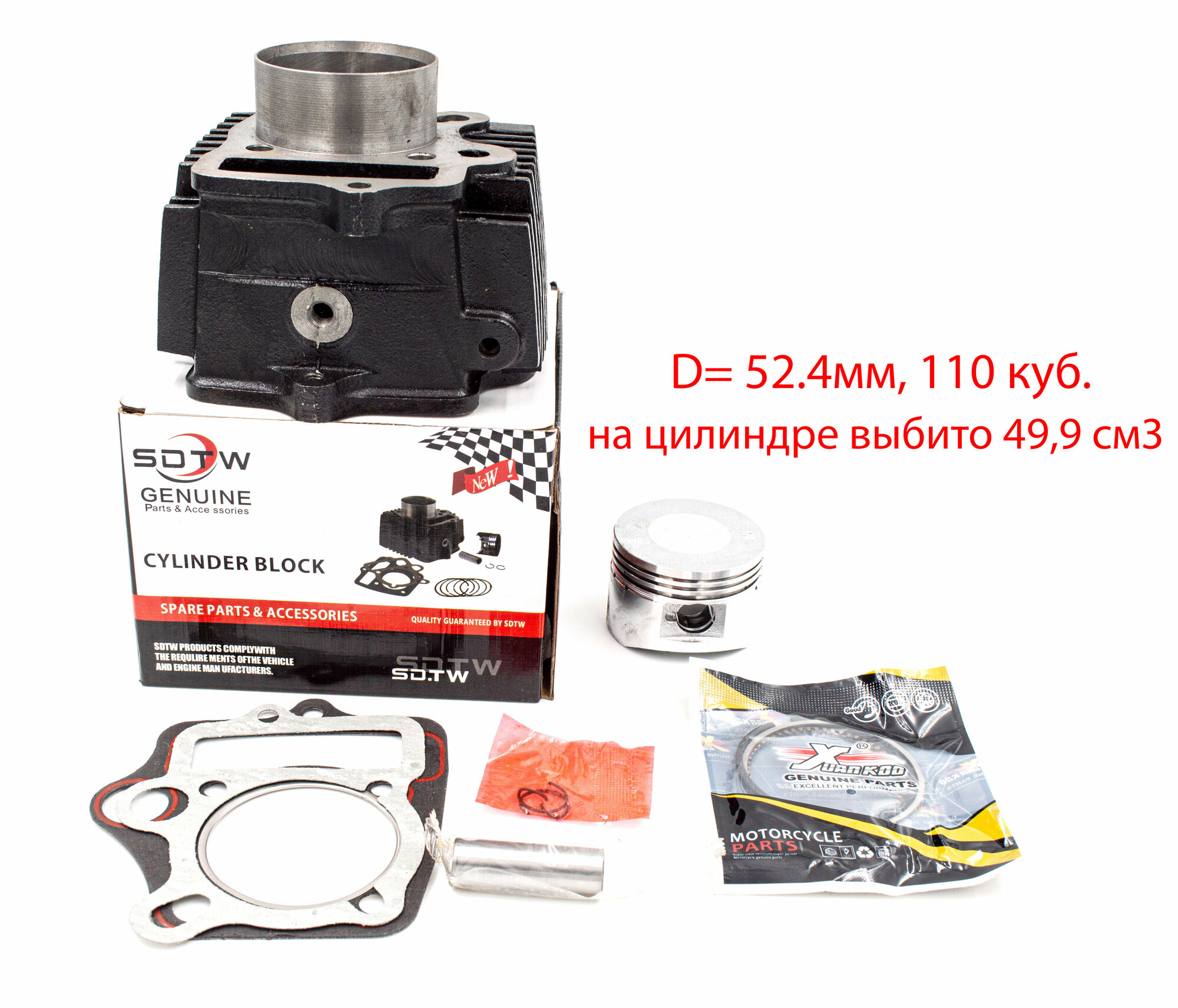 Цилиндро-поршневая группа мопеда Альфа, Дельта, Alfa в сборе 52,4 мм (110см3) на цилиндре выбито 49,5 см3