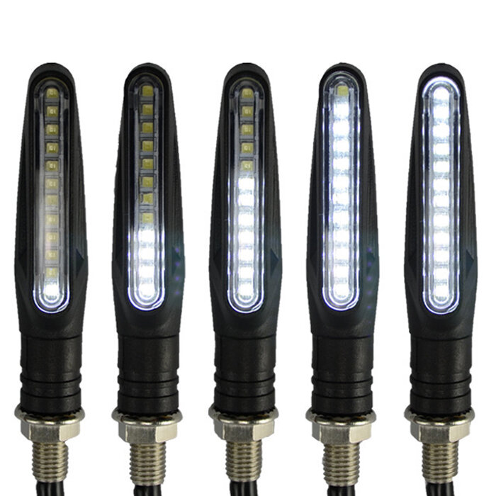 Светодиодные ходовые огни - белые бегущие для мототехники (мотоциклов, байков, мопедов), комплект 2 шт. интересное: