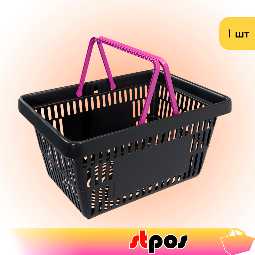 Купить Корзина покупательская пластиковая чёрная с 2 ручками цвета фуксия усиленная ROCK 20 л