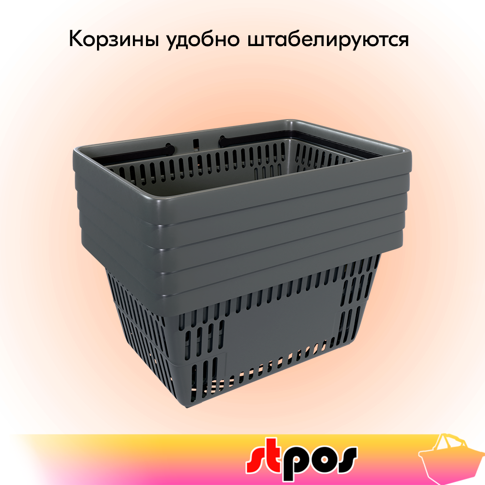 Купить Набор Корзин покупательских пластиковых с 2 ручками, 20 л, Усиленных, Серый 10 шт