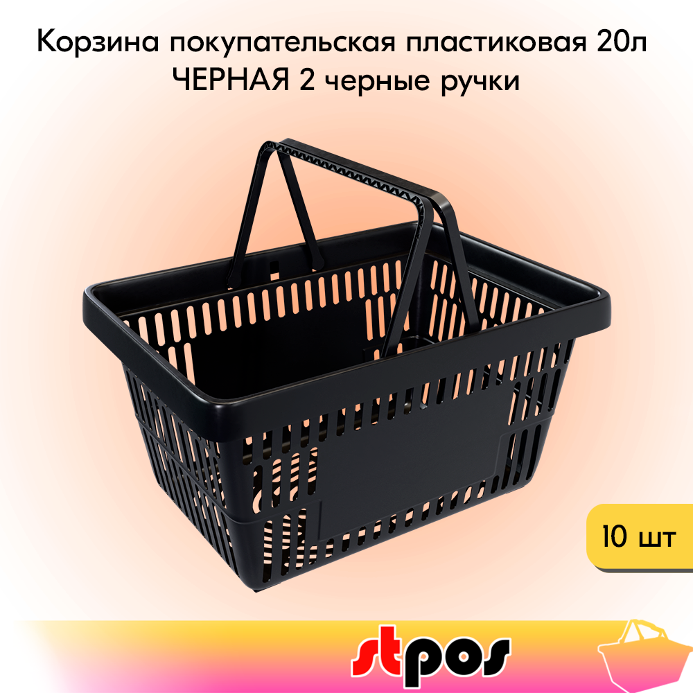 СохранитьНабор Корзин покупательских пластиковых, Черная с 2 Черными ручками, Усиленная ROCK 20 л, 10 штук интересное: