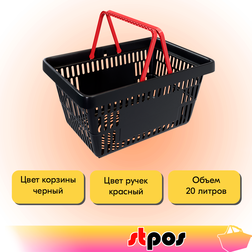 Корзина покупательская пластиковая чёрная с 2 красными ручками усиленная ROCK 20 л