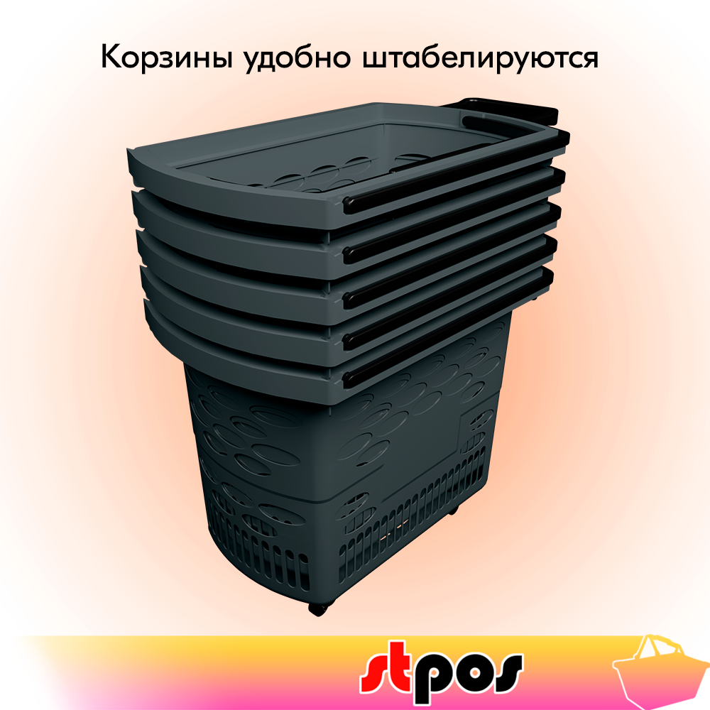 Корзина-тележка пластиковая 80 л, с 1 пластиковой ручкой, цвет чёрный 1шт.