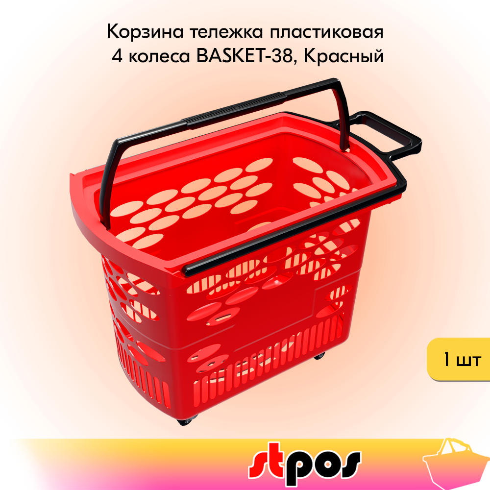 Купить Корзина тележка пластиковая 4 колеса 38л BASKET-38, Красный