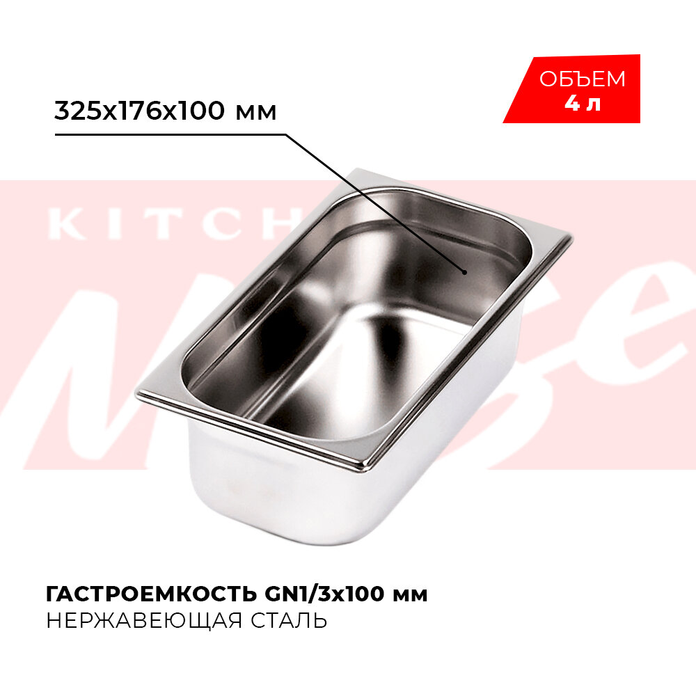 Гастроемкость из нержавеющей стали Rock Kitchen GN1/3-100 мм, 813-4. Металлический контейнер для еды. Пищевой контейнер из нержавеющей стали интересное:
