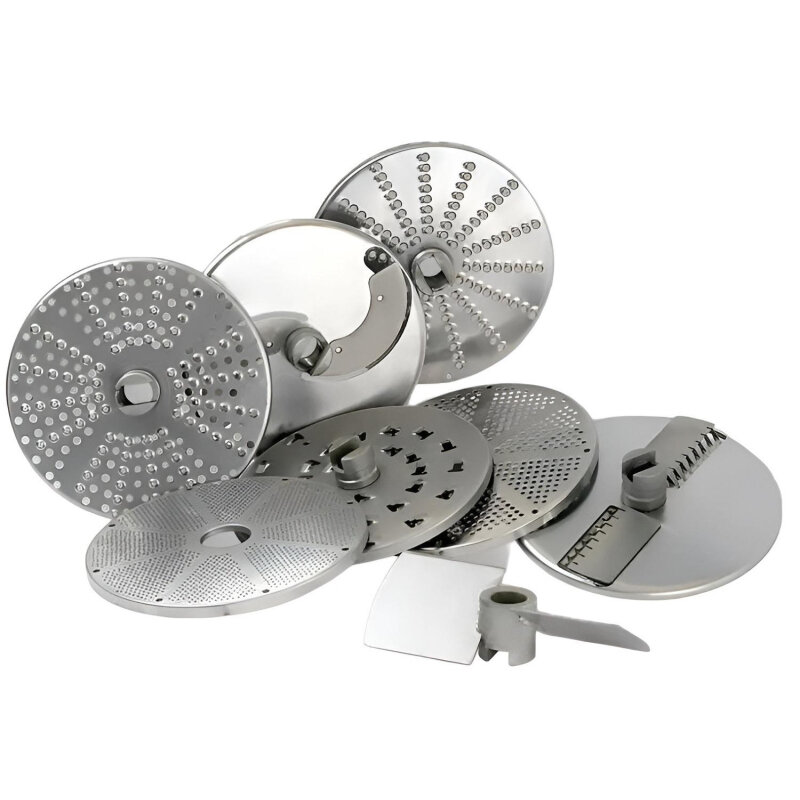 | Подробная комплектация | Диск шинковочный (нарезка соломкой 4х3 мм) 13.00.00. Диск тонкого измельчения (для драников) 12.00.00. Нож комбинированный (нарезка брусочками 5х10 мм) 14.00.00. Нож для нарезки соломкой 2х2 мм (по-корейски) 04.16.00. Диск терочный (нарезка размером 1,3х3,5 мм) 11.00.00. Нож дисковый (нарезка ломтиками толщиной 2 мм) 10.00.00. Решетка ножевая 10х10 (нарезка кубиками 10х10х10 мм, используется с ножом дисковым 10 мм) 04.03.00. Нож дисковый 10 мм (нарезка ломтиками 10 мм, нарезка кубиками 10х10х10 мм, при использовании с решеткой ножевой 10х10 мм) .04.06.00 Диск протирочный с отверстиями d 4 мм 00.00.04 Диск протирочный с отверстиями d 1,5 мм 00.00.05 |