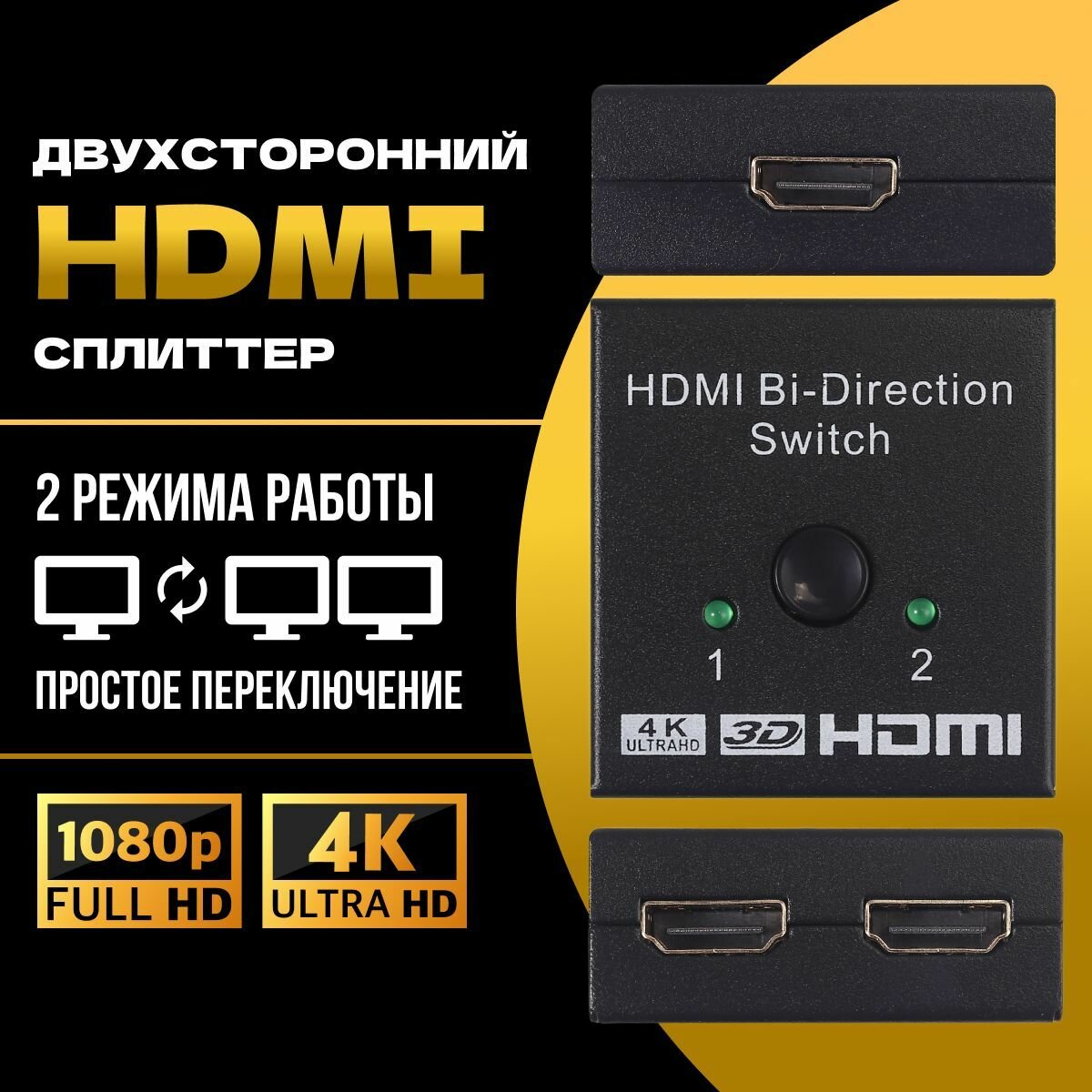 HDMI switch сплиттер двухсторонний, разветвитель HDMI, переключатель на 2 порта интересное: