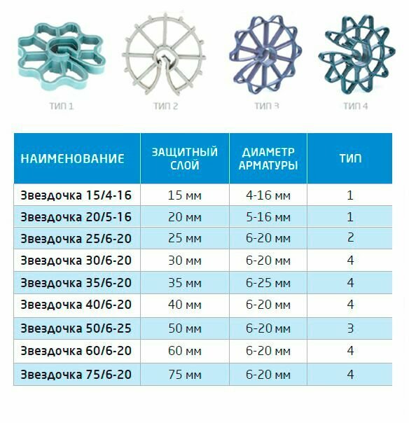 СохранитьФиксатор арматуры Звездочка 40 мм (1 шт.) (Диаметр арматуры от 6 до 20 мм,защитный слой 40 мм) интересное:
