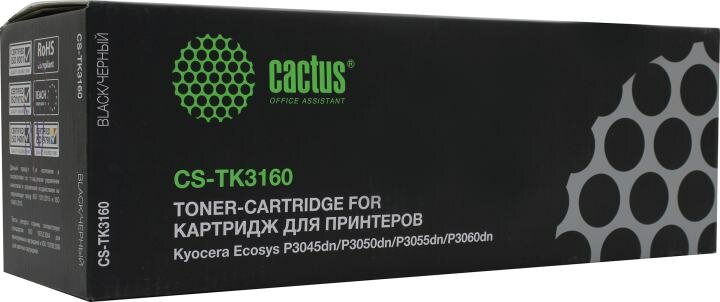 Тонер-картридж CACTUS (CS-TK3160) для KYOCERA Ecosys P3045dn/3050dn/3055dn/3060dn, ресурс 12500 стр.