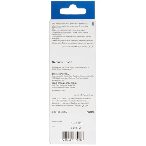 Чернила Epson C13T06C34A, для Epson L11160, Epson L15150, Epson L15160, Epson L6550, Epson L6570, пурпурный, фиолетовый, 6000 стр., 70 мл, 1 цвет