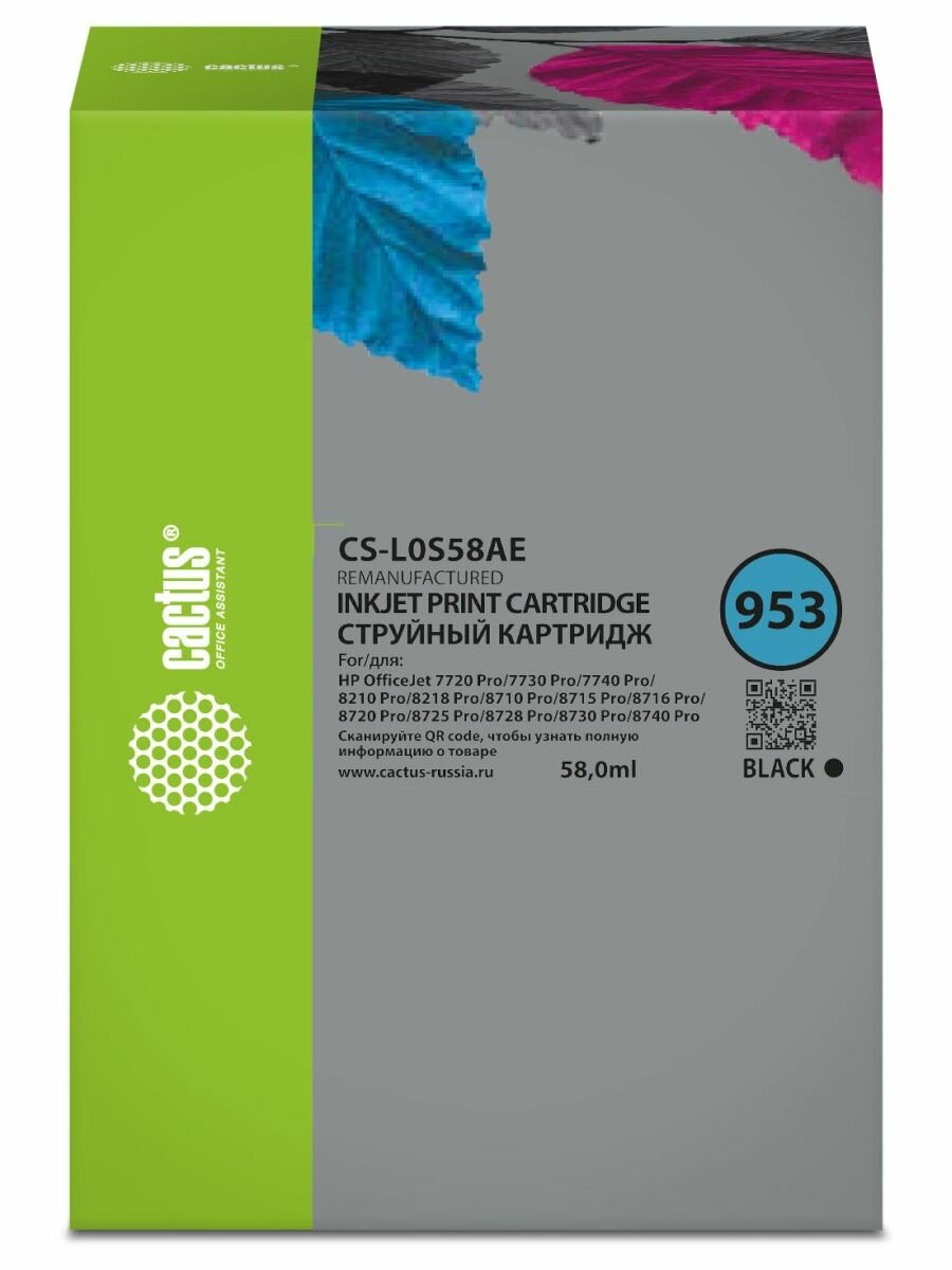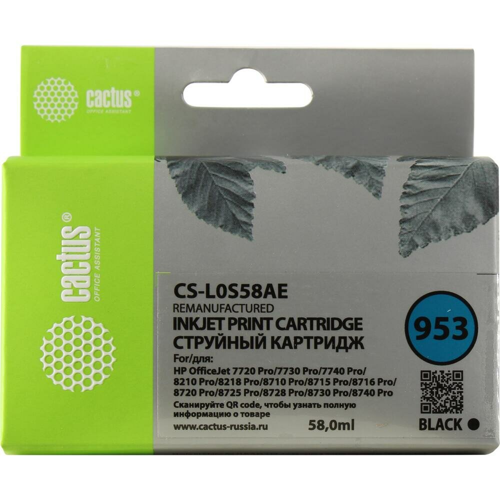Картридж Cactus CS-L0S58AE, 953(есть ограничения по прошивке), черный / CS-L0S58AE