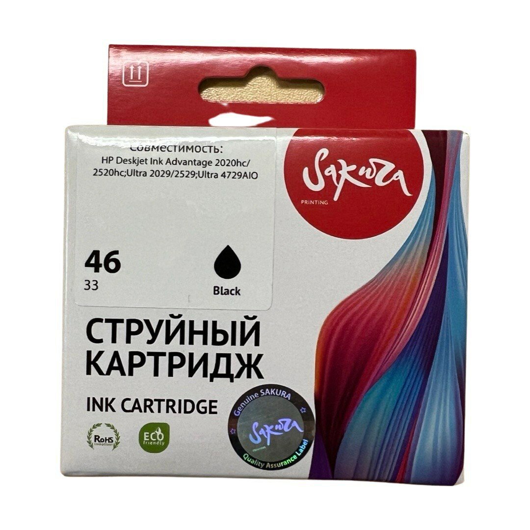 Sakura Printing Струйный картридж Sakura CZ637AE (№46 Black) для HP, черный, 33 мл., 1600 к.