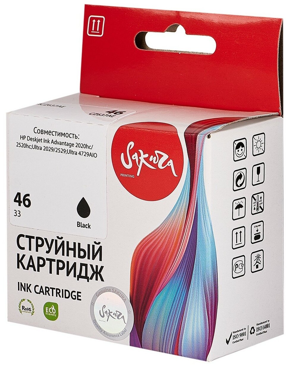 Картридж струйный Sakura 46 / CZ637AE черный, пигментный тип, 33 мл., 1600 стр. для HP (SICZ637AE)