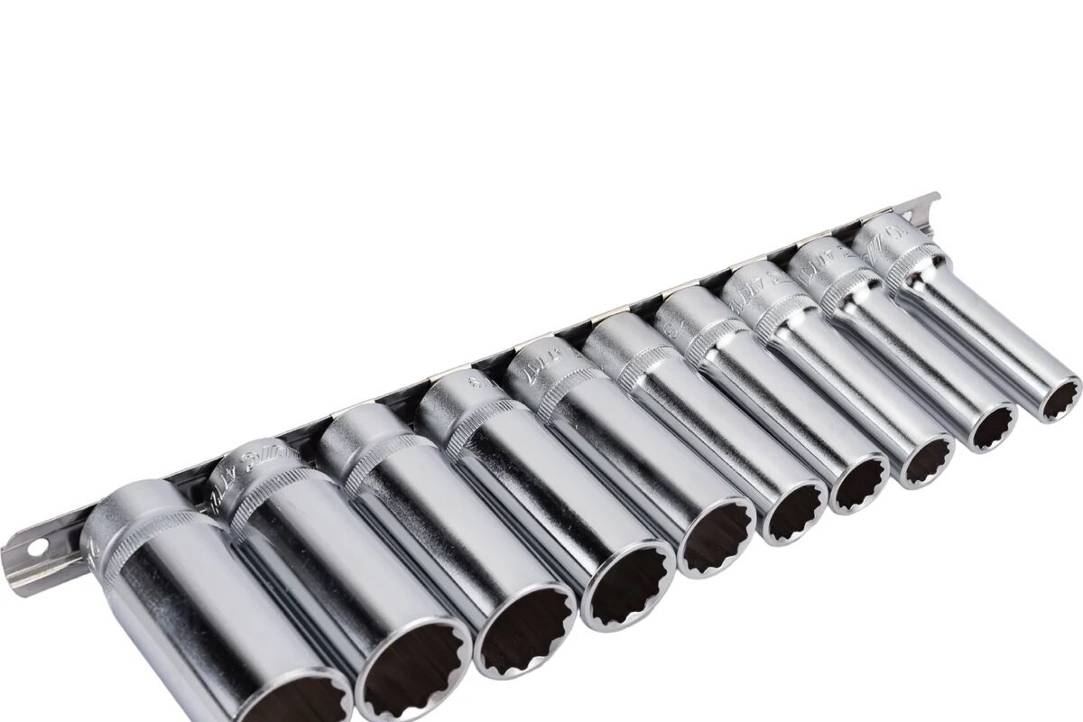 JTC JTC-T410M Набор головок торцевых 1/2 12 гр на планке Удлиненные 10 24мм длина 76мм 10шт