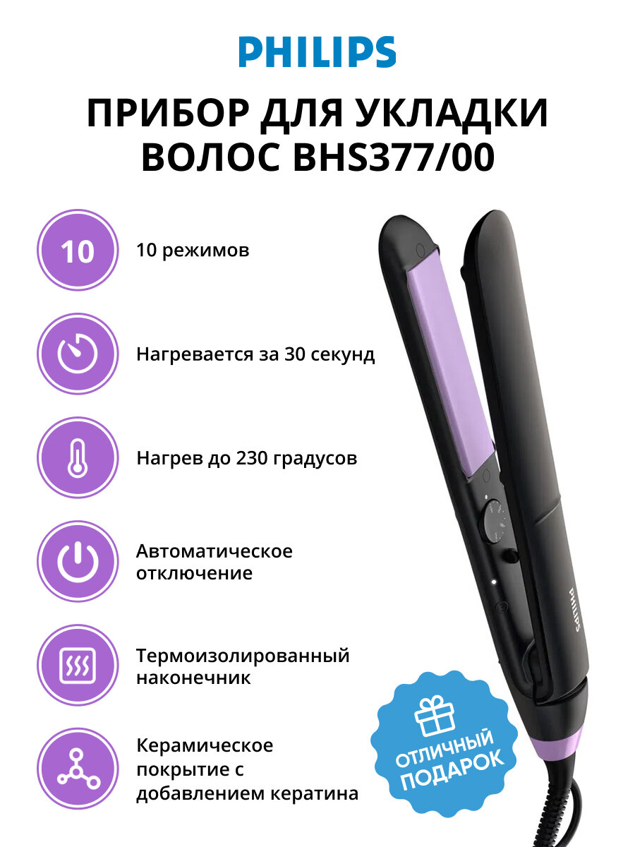 Philips BHS377/00 Выпрямитель для волос, черный .