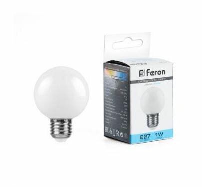 Лампа светодиодная LED 1вт Е27 белый 6400К (шар). 25115 FERON