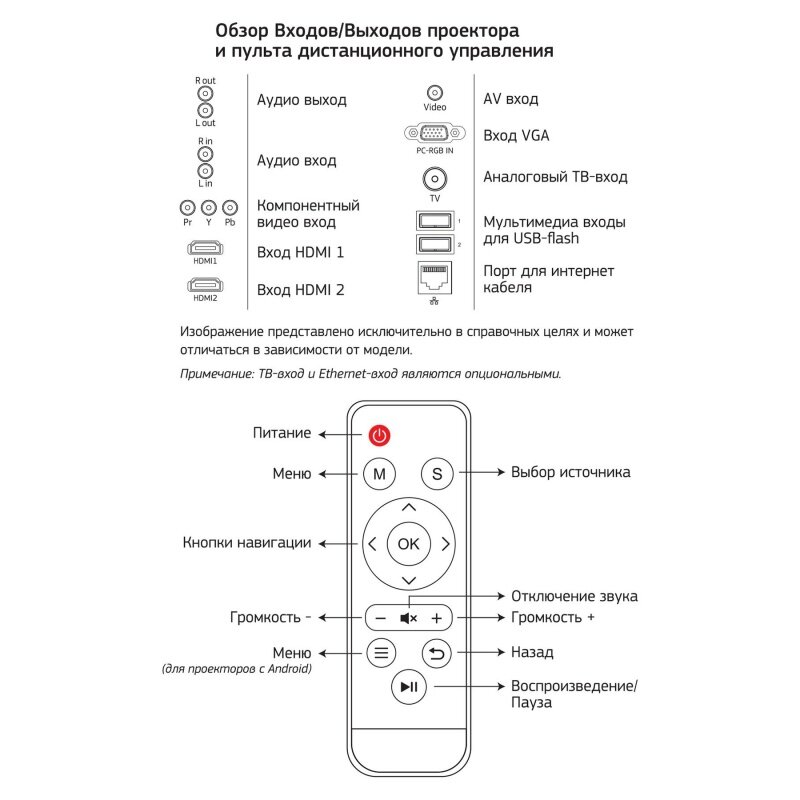 | Функции и параметры изображения | коррекция трапецеидальных искажений |