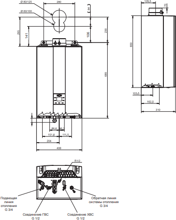 | Диаметр коаксиального дымохода | 60/100 мм |