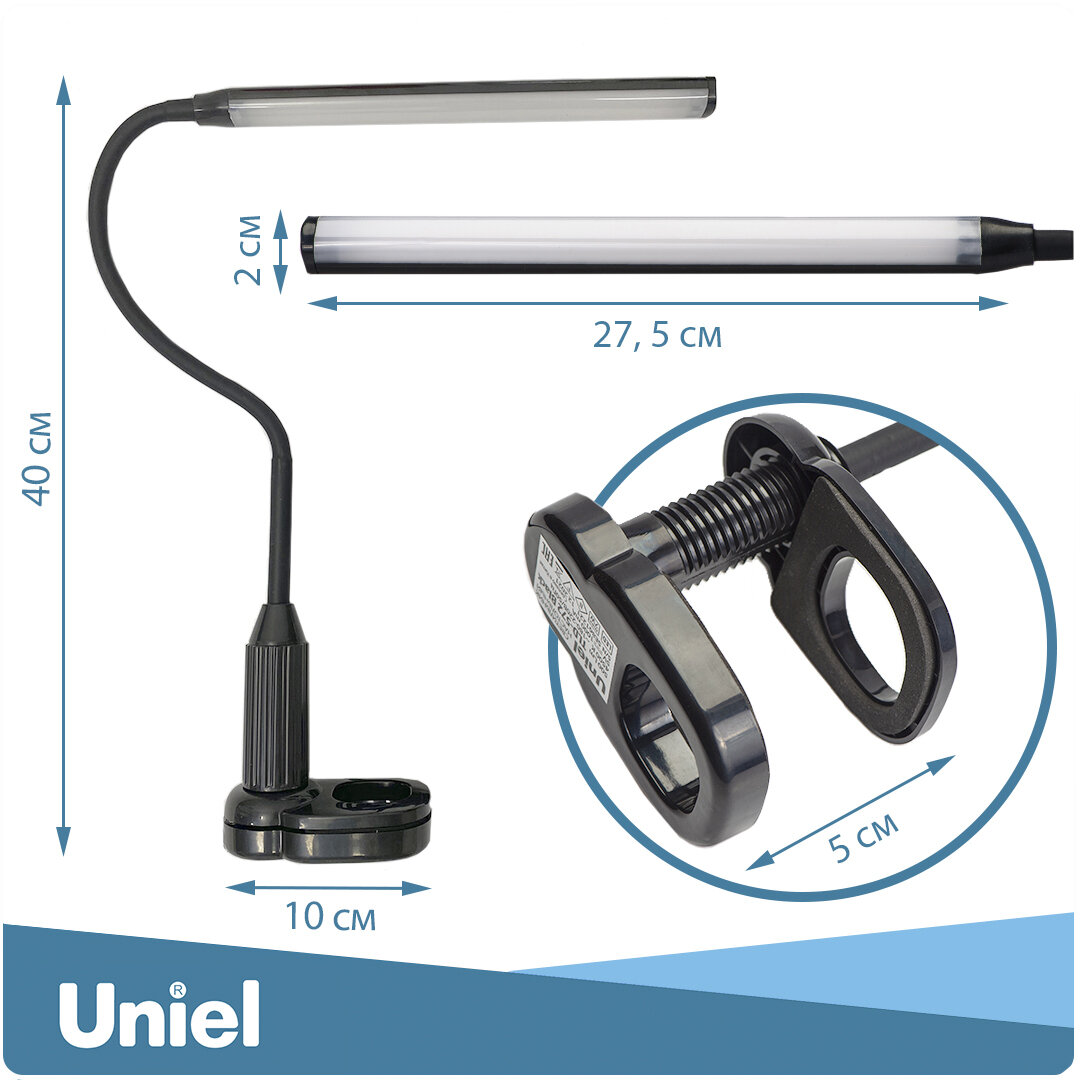 Лампа настольная светодиодная на струбцине, светильник настольный Uniel TLD-572, 7 Вт, 500 лм, 4500К (сенсорный диммер)