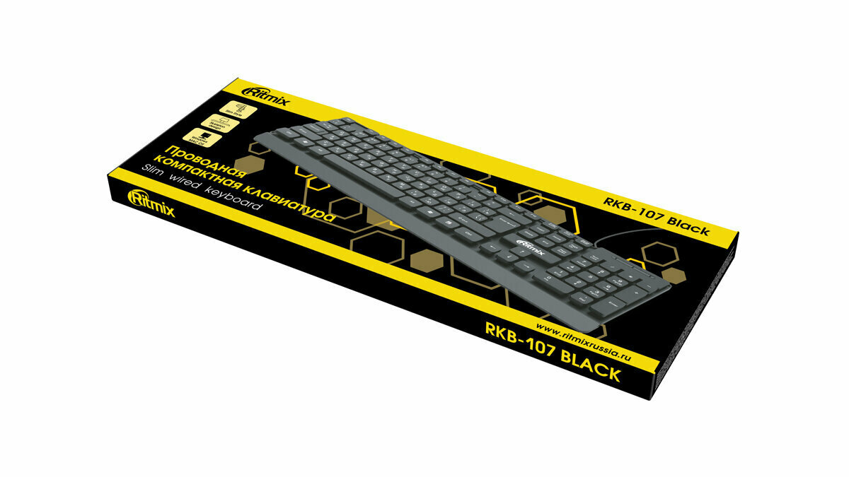 Клавиатура Ritmix RKB-107 Black USB черный, английская/русская (ANSI)