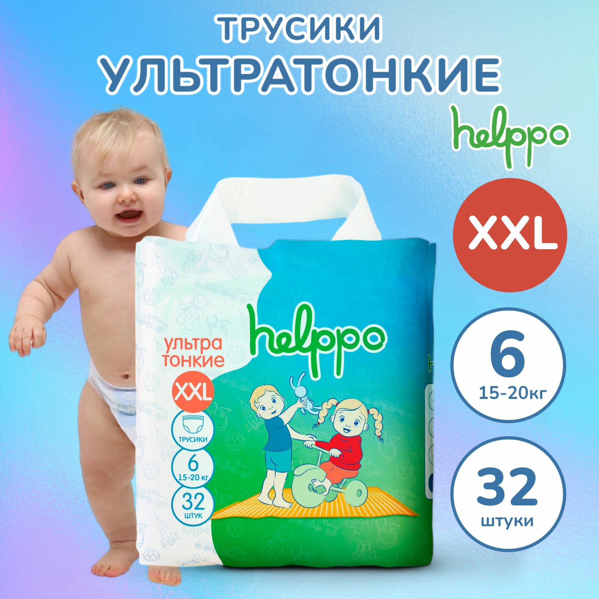 Купить Подгузники трусики helppo, ультратонкие, размер XXL (15-20 кг), 32 шт