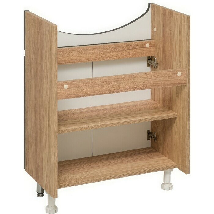 | Комплектация | тумба под раковину, петли со встроенным доводчиком, одна ручка, 2 хромированные и 2 пластиковые ножки |