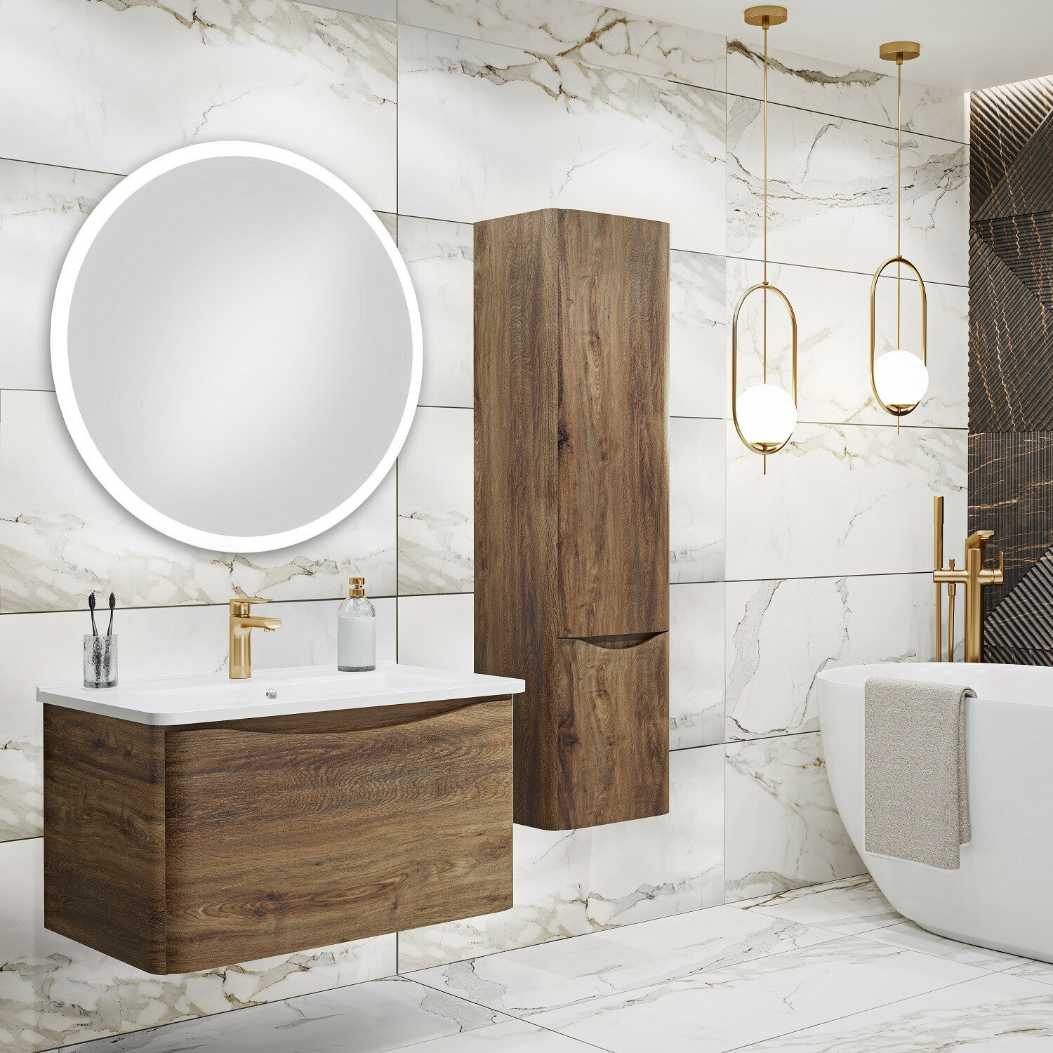 Тумба под раковину в ванную Runo Модена 75, подвесная, крафтовый дуб, под умывальник Оскар 75