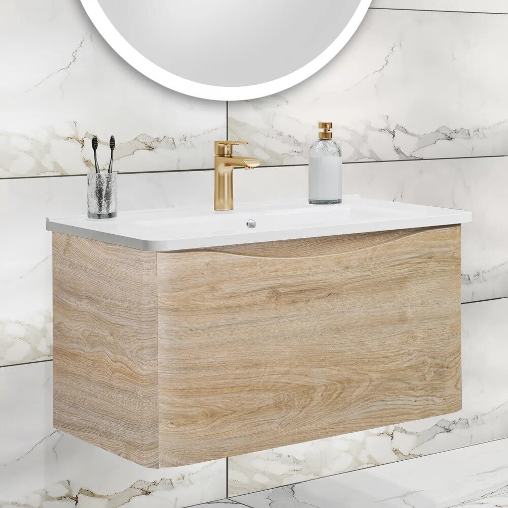 Тумба под раковину в ванную Runo Модена 75, подвесная, крафтовый дуб, под умывальник Оскар 75