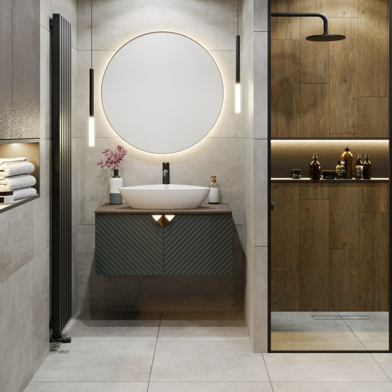 СохранитьТумба с раковиной подвесная Андорра 85, зелёный графит-дуб коньячный (раковина Terzo) интересное: