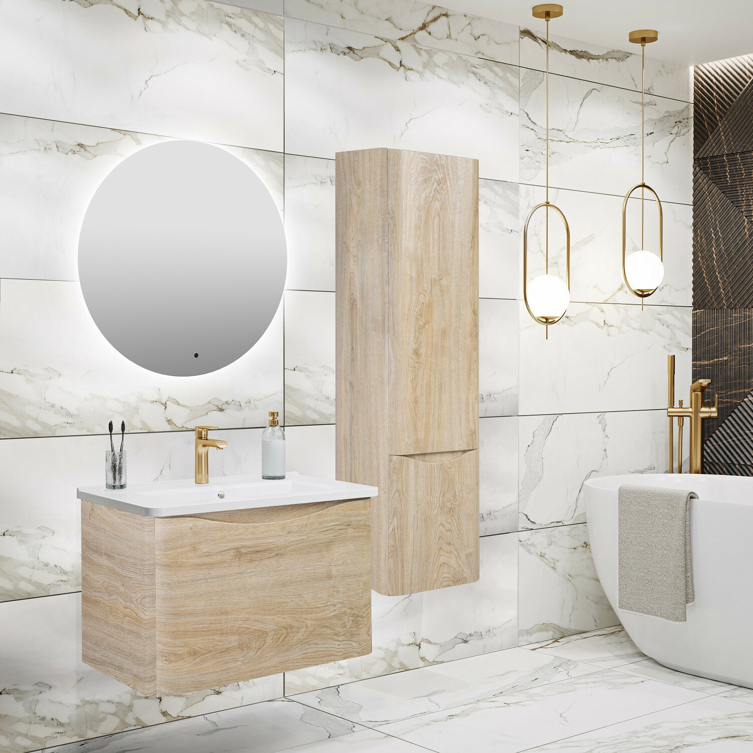 Тумба под раковину в ванную Runo Модена 75, подвесная, крафтовый дуб, под умывальник Оскар 75