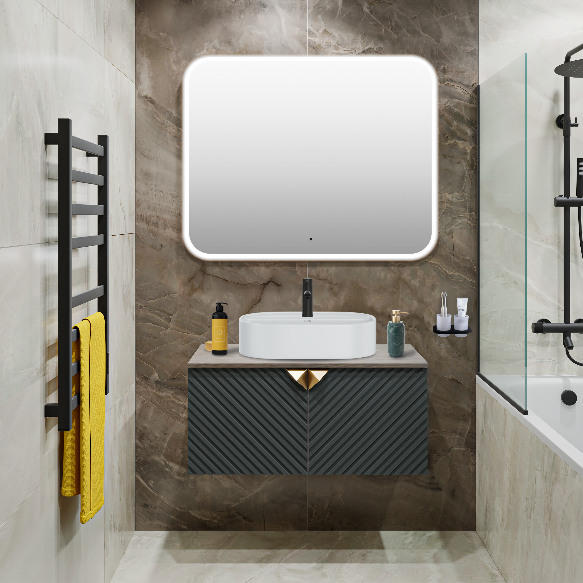 Тумба под раковину в ванную Runo Модена 75, подвесная, железный камень, под умывальник Оскар 75
