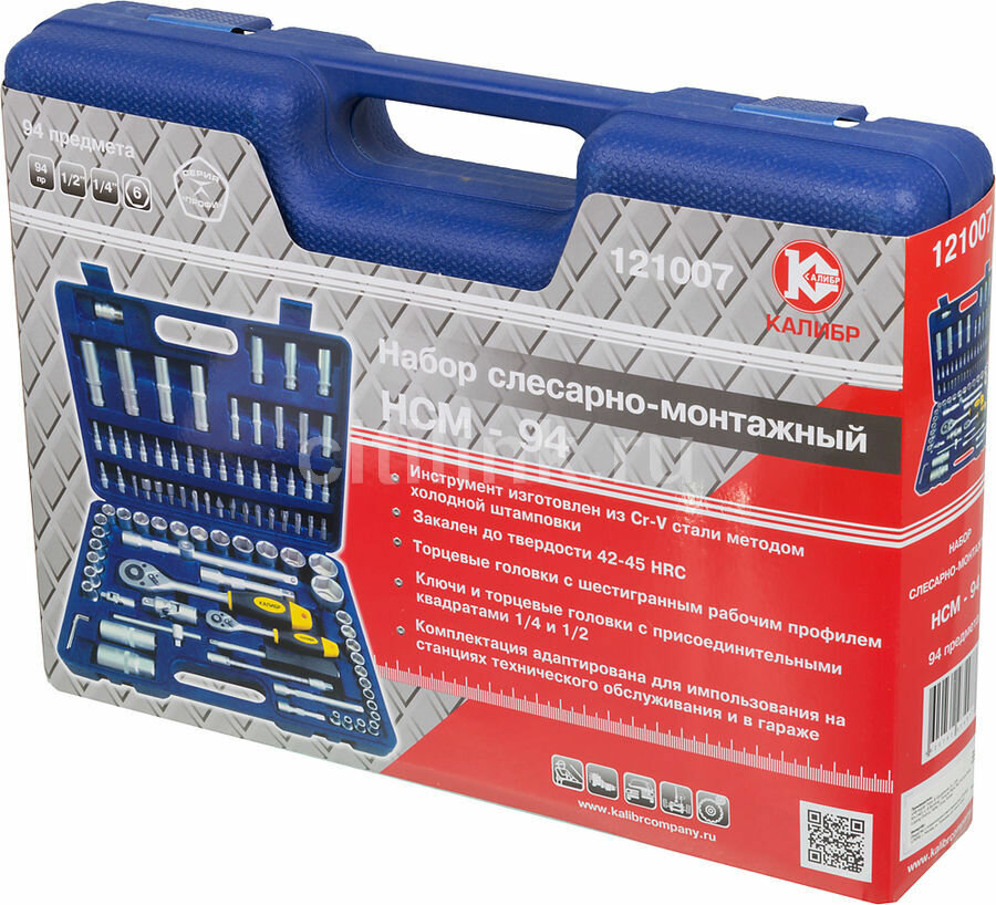 Купить Набор слесарно-монтажный калибр НСМ-94 94 предмета, синий/хром