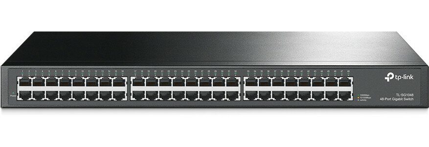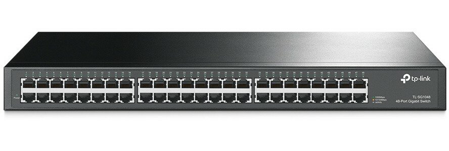 Неуправляемый коммутатор TP-Link TL-SG1048, 48-портовый гигабитный коммутатор, 48 портов RJ45 10/100/1000 Мбит/с, 1U 19-дюймовый монтируемый в стойку стальной корпус