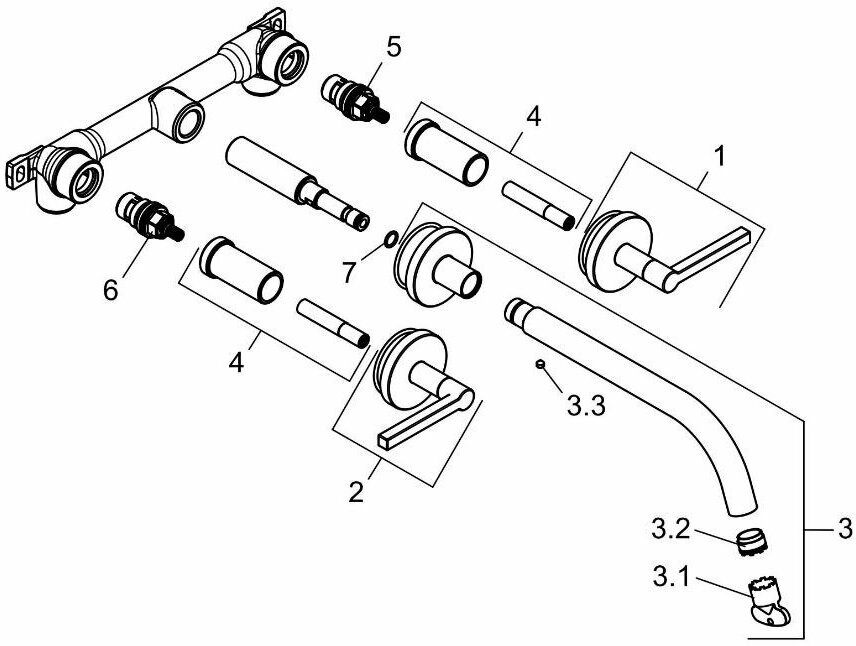 Встраиваемый в стену смеситель для раковины Kludi Nova Fonte, арт. 201440515, на 3 отв., литые рычаги