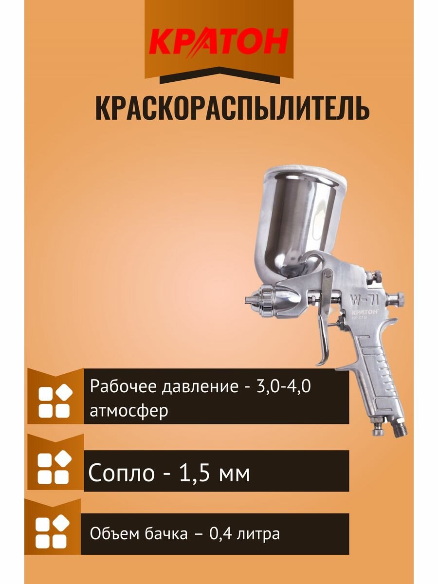 Ниже Вы можете прочитать отзывы на Краскопульт Кратон HP-01G с верхним бачком и регулировками, ознакомится с подробными характеристиками, посмотреть интересные обзоры и фотографии на Краскопульт Кратон HP-01G с верхним бачком и регулировками.