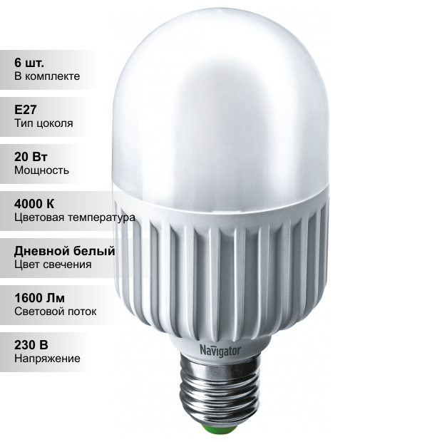 Купить (6 шт.) Светодиодная лампочка Navigator 20Вт 230В 4000К E27
