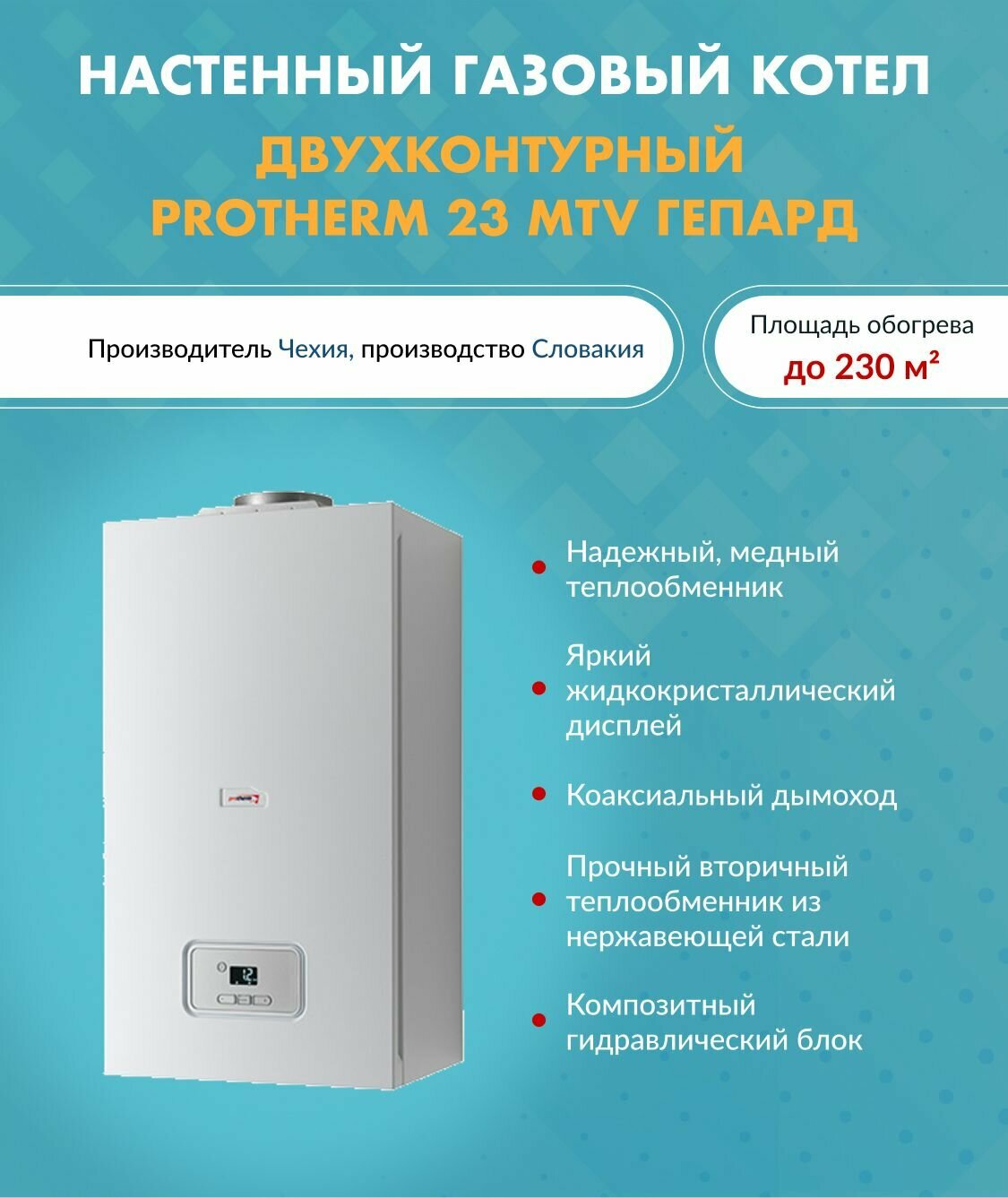 Котёл газовый Protherm Гепард 23 MTV (Двухконтурный/Закрытая камера сгорания 0010015238)