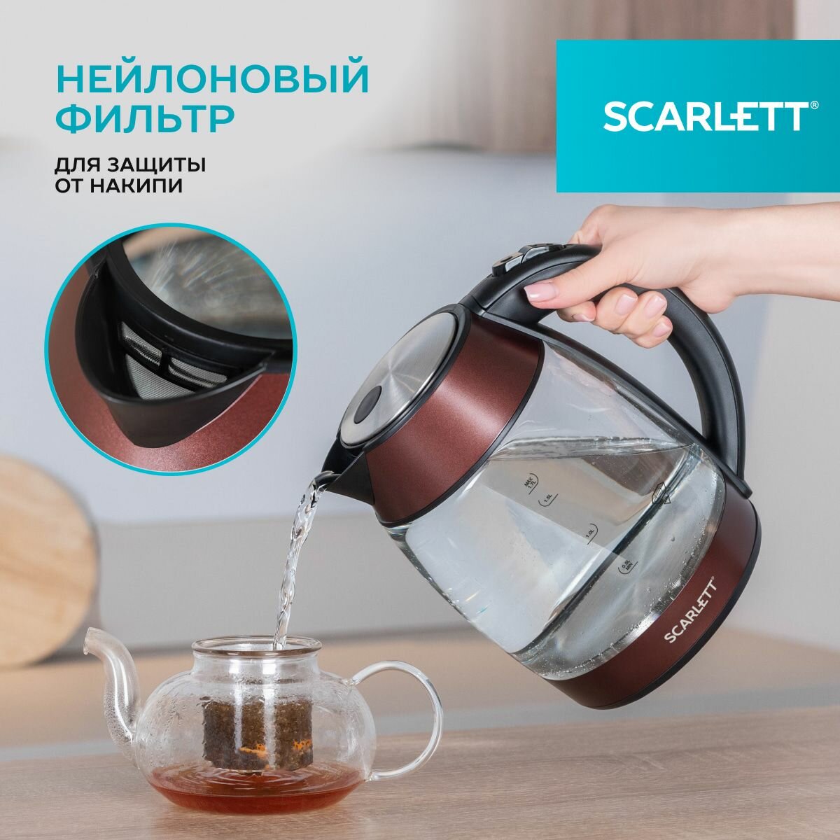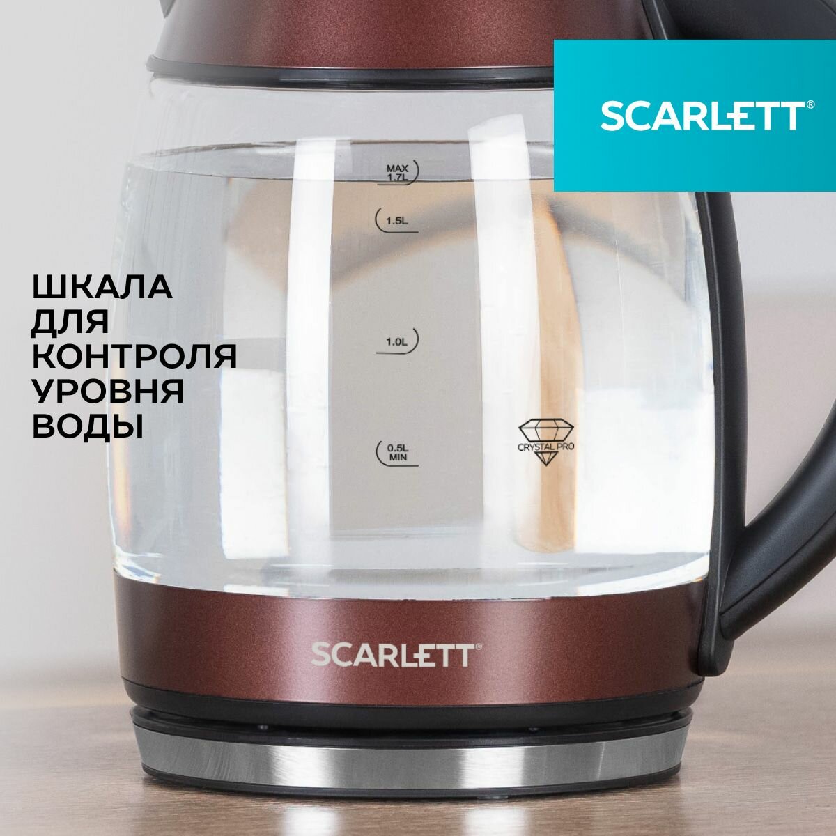 Купить Чайник электрический Scarlett SC-EK27G100 1.7л. 2200Вт коричневый/черный (корпус: стекло)